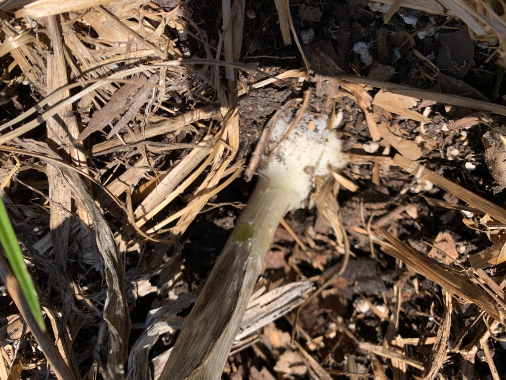 “I (Aunt Lynn) remember going to the house when I was a child they were renting it out by then. But then the house sat empty for a long time through different hands in the family and eventually deteriorated. Aunt Ginger had the house scraped. She went to the location about 10 years ago in the spring and the garlic was coming up so I dug up some and kept them alive, but not happy, till now. Then your mother grabbed a few bulbs from me and that’s the garlic bulbs you rescued from the pot”. That property is Lynns now. Anyone currently growing garlic in the family do not use it, only grow it.