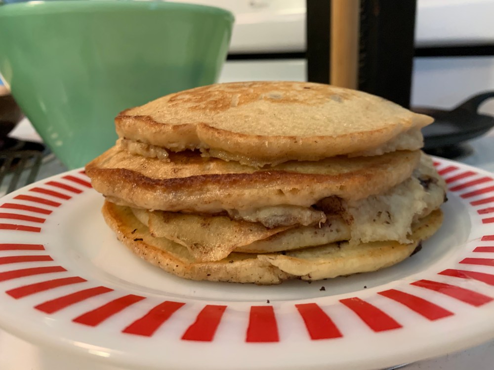 If I have chocolate, coconut, or pecans, all of them will wind up in the pancake as well. Use your imagination and fill your pancakes with your choosing just don’t over fill it.