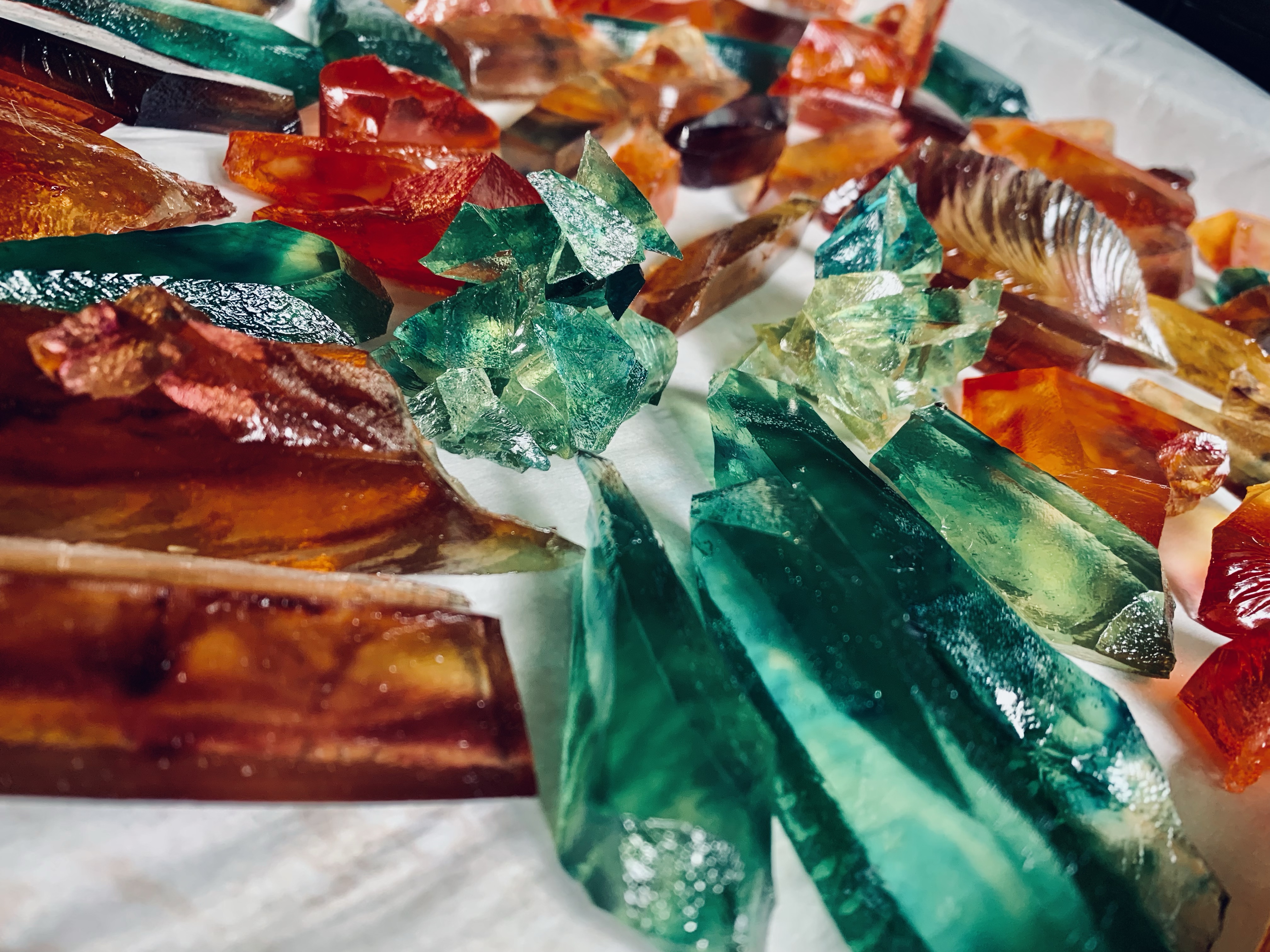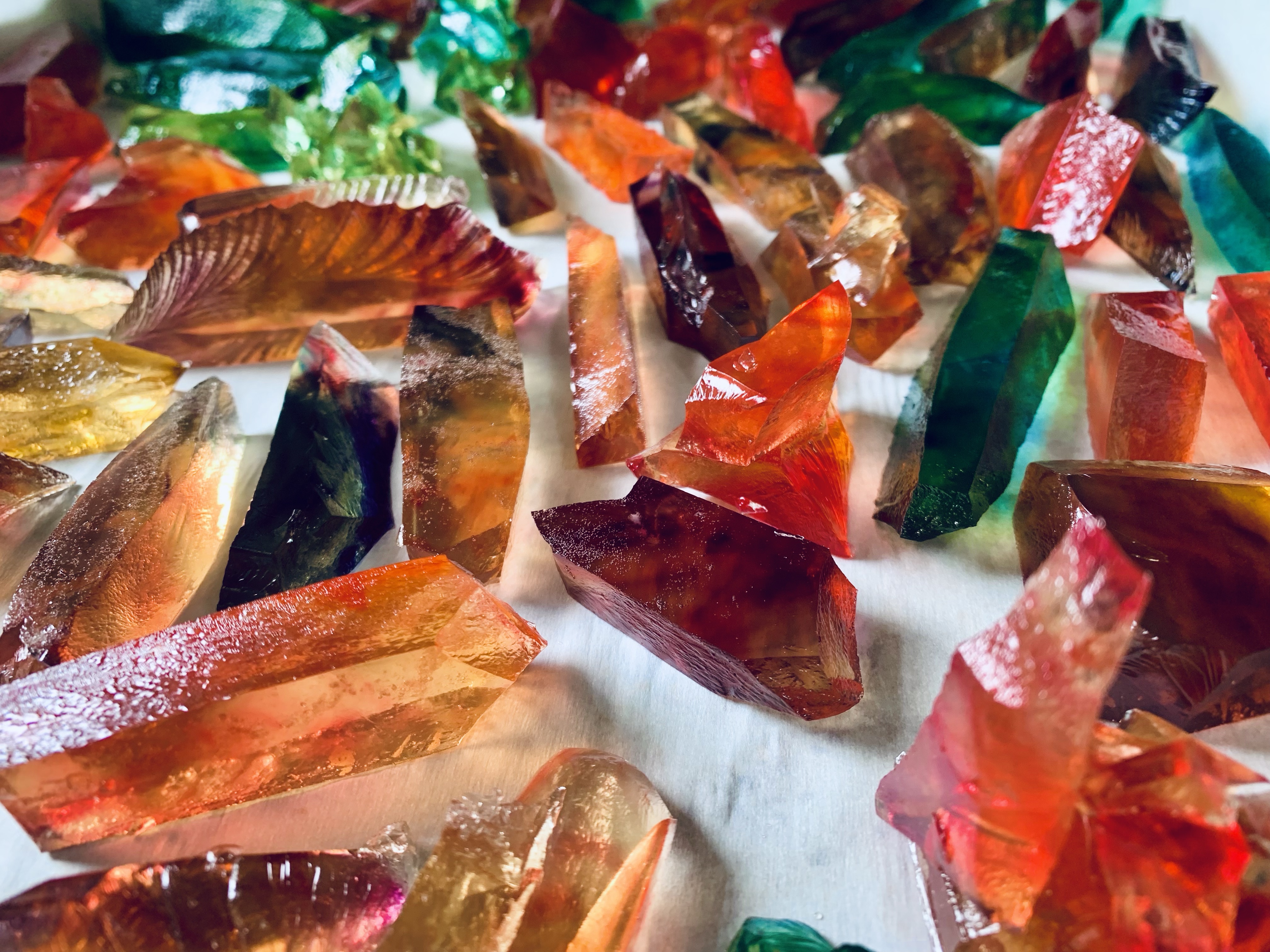 Kohakutou is the Japanese crystal candy that has a hardened outside and a jelly like center. They are becoming popular as an ASMR candy due to the crunch they provide.