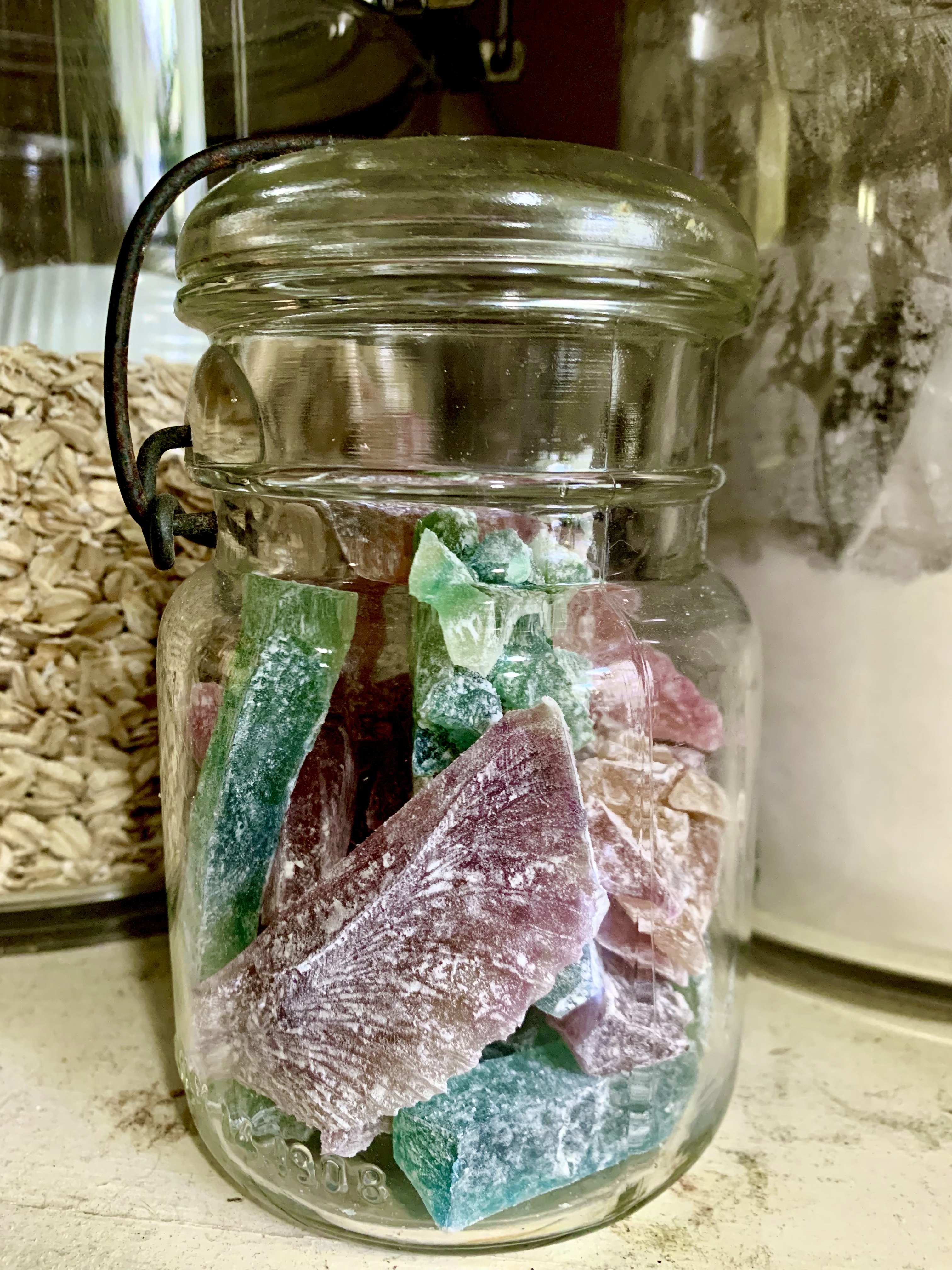 My witchy little heart just loves an option to bring more crystals into the house, edible or not. These are some of my favorite little candies to have on hand. I put them in a variety of jars and tuck them away in places around the house. They have a long storage life, so they are perfect for edible decor and transportation.