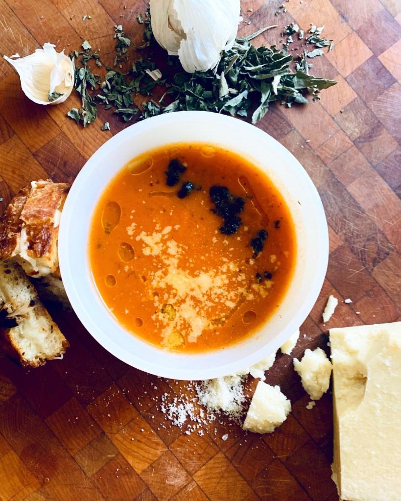 Tomato soup and grilled cheese. While I would gladly eat this year round it really shines in the colder months. Less is growing but all the work put into canning a tomato harvest and processing basil in spring makes the effort so worth it. Fresh and bright. Hearty and comforting. Grill up some cheese and get to dunking.