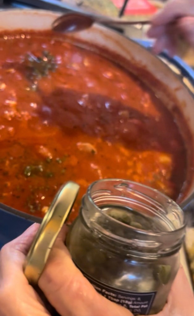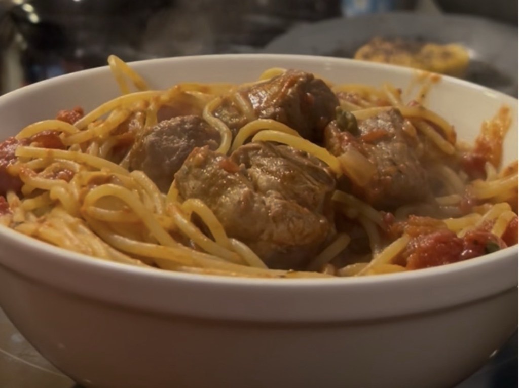 There was always meat defrosting in the sink — chicken, sausage, meatballs, country pork ribs, whatever was available. Everything would get seared and added to the sauce to finish cooking until dinner.